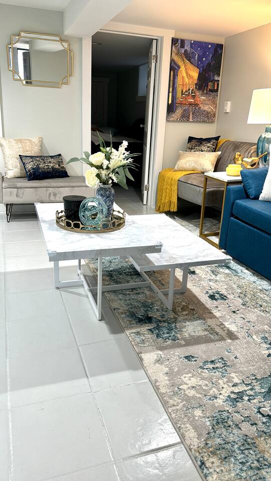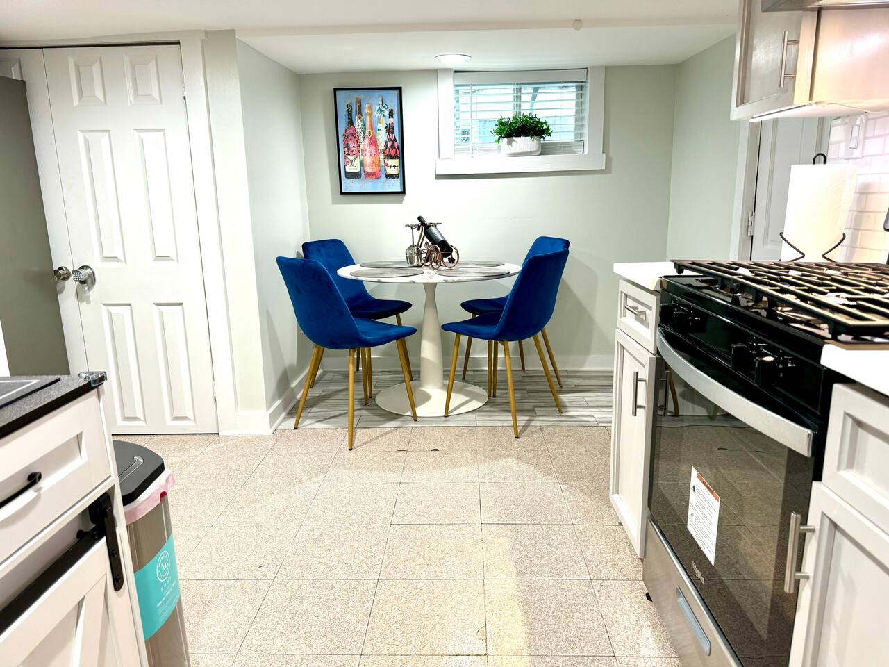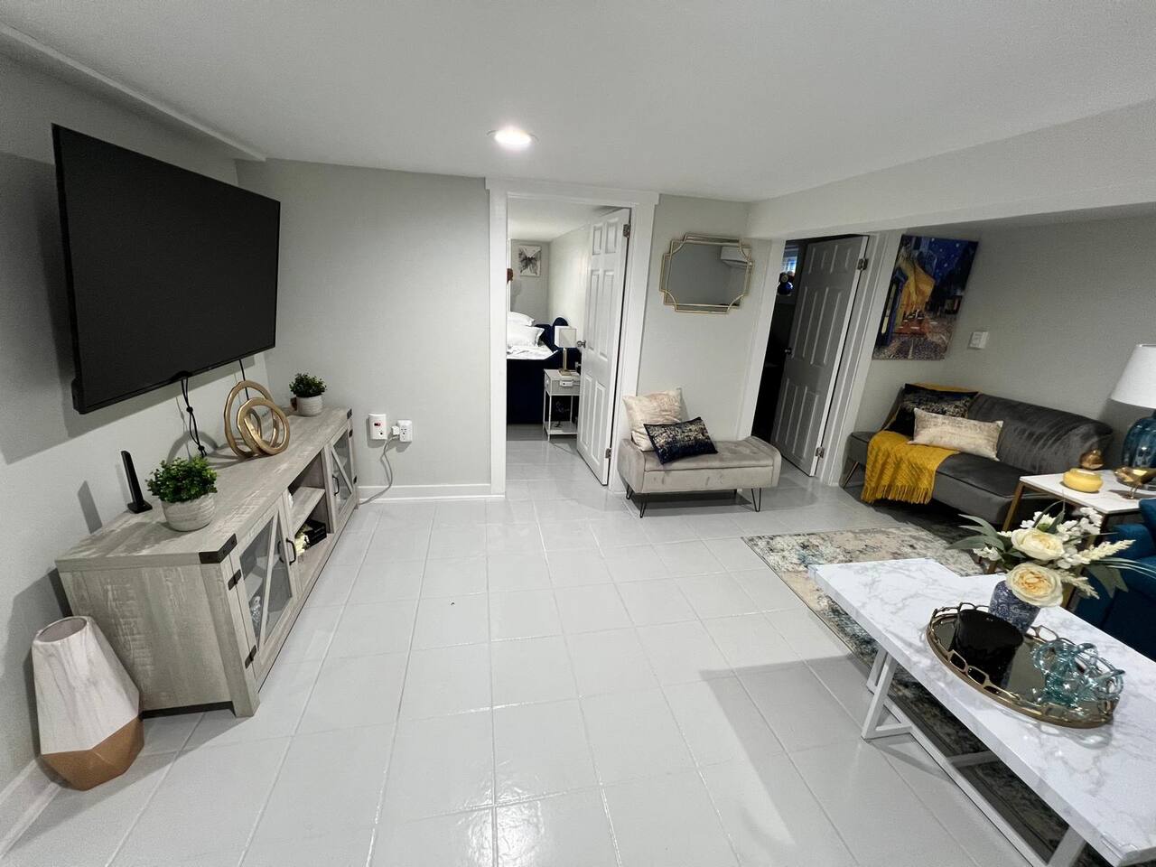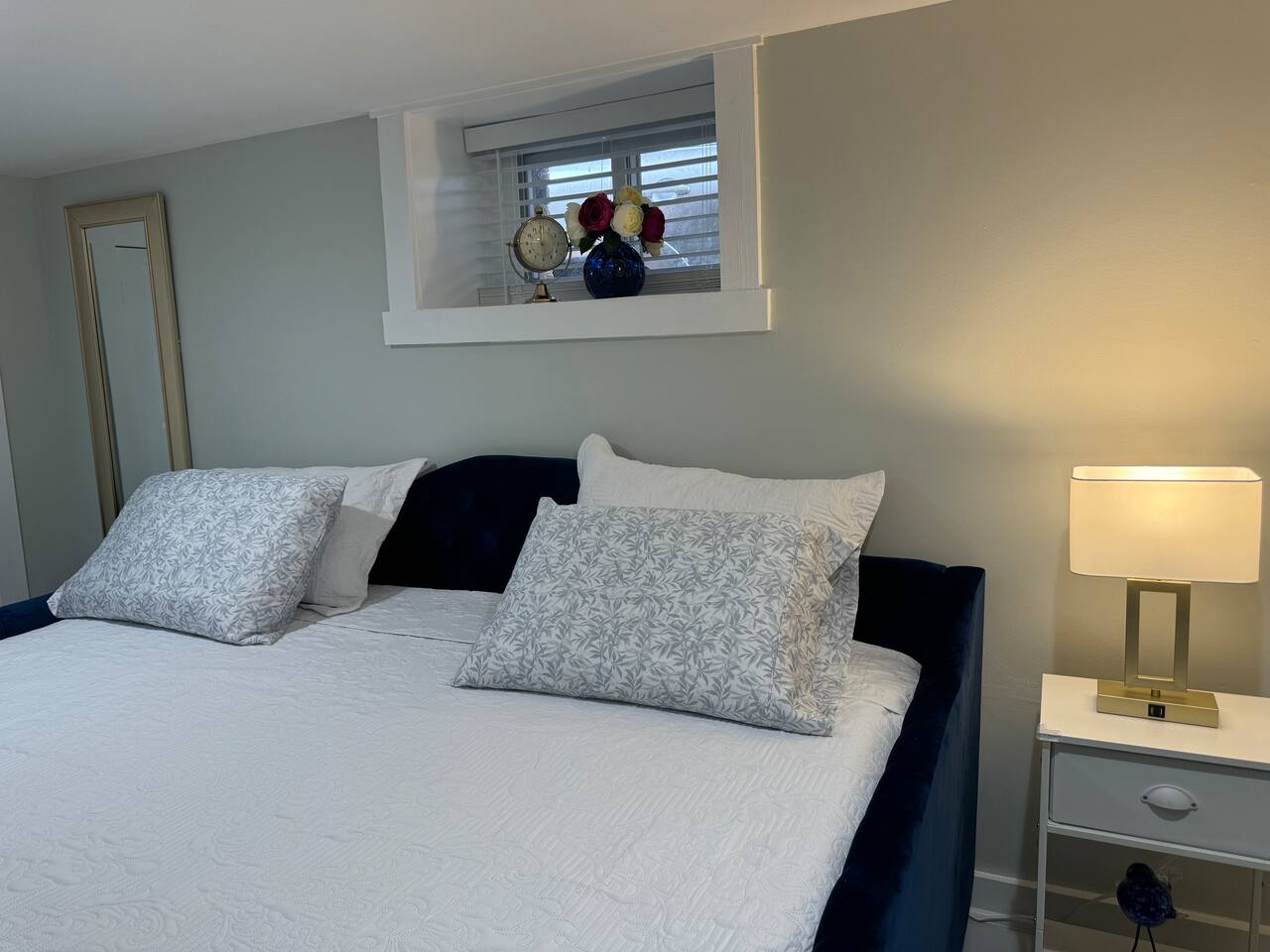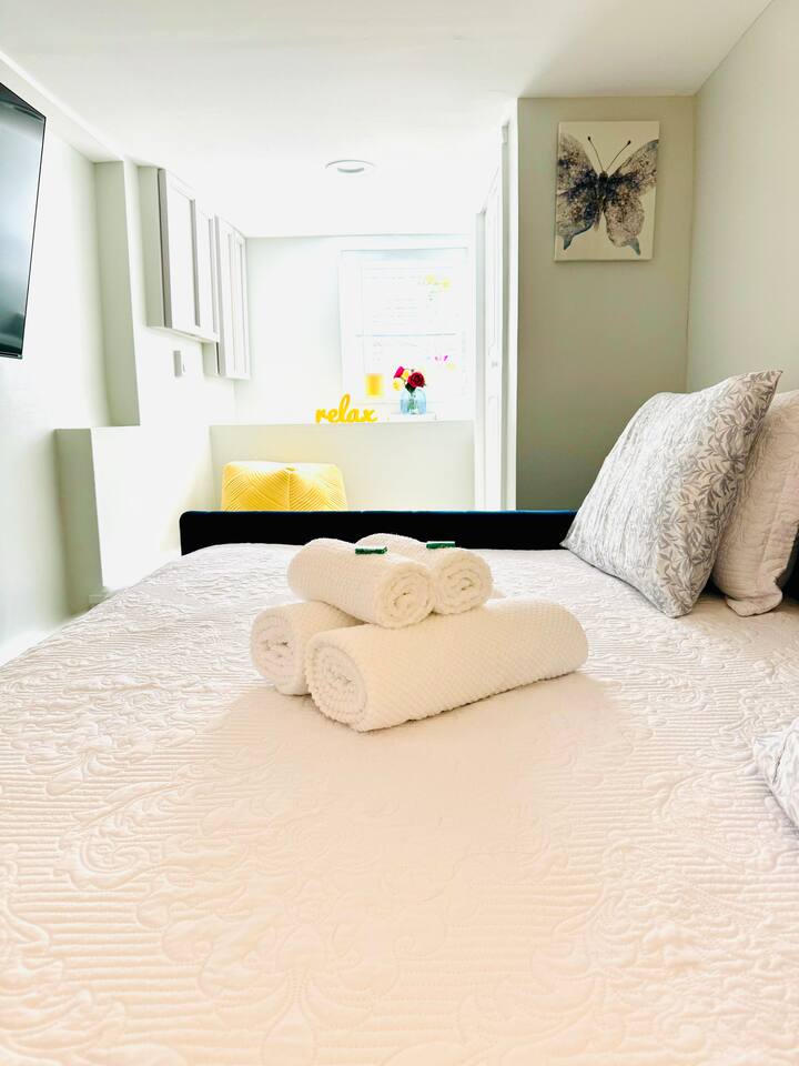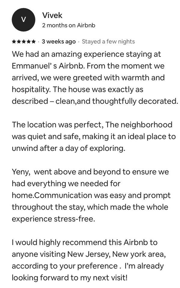 The large backyard has a sitting area with outdoor furniture, a fire pit, and fire grill. Free parking. This apartment has a low ceiling and it’s not ideal for people over 6 ft. tall. A family with 2 children lives on the second floor, while we ask the kids to not run or make loud noises, you may hear footsteps/noise during non-school/non-summer camp hours. Our property features a large living room with a 55 inch 4K FireTV. A sofa bed which fits two people, and a full size blow-up mattress in case you need the extra sleeping space. The bedroom to the right features a queen size bed w/closet, a 50 inch 4K Roku Smart TV, and a full length mirror. The bedroom to the left features a full size bed w/closet, 50 inch 4K Roku Smart TV, full body mirror, extra dresser for storage, and a sitting area for relaxation. The kitchen is fully stacked with a large refrigerator (w/filtered water built-in ice maker, and BPA Free Brita Pitcher for filtered water), decaffeinated/caffeinated coffee/tea w/cream & Sugar. —Laundry— We are only eight walking blocks away from the laundry mat. —NJ transit bus is only two blocks away from this house. The bus will take you directly to Port Authority, a short walking distance to Times Square in NYC. There are also privately owned smaller buses. The fee for the bus is between $4.00-$7.00, one way/person. The travel time depends on traffic. With no traffic, public transportation will take you there in 35 minutes. If you drive you can be there in 20 minutes. —There’s also the Tonnelle Avenue Station, this light rail is only 7 minutes away from the house and takes you to the path-train, with the World Trade Center, downtown NY as its final destination. The light rail also takes you directly to Liberty State Park where you can enjoy seeing Ellis Island and the Statue of Liberty. ⚠️ Ceiling Height Notice This is a charming older unit with some low-clearance areas: Living room ceiling: 75" Kitchen ceiling: 72" Living room support beam: 58" Bathtub height: 70.5" Left bedroom closet: 63" Please be mindful of these when moving around the space.