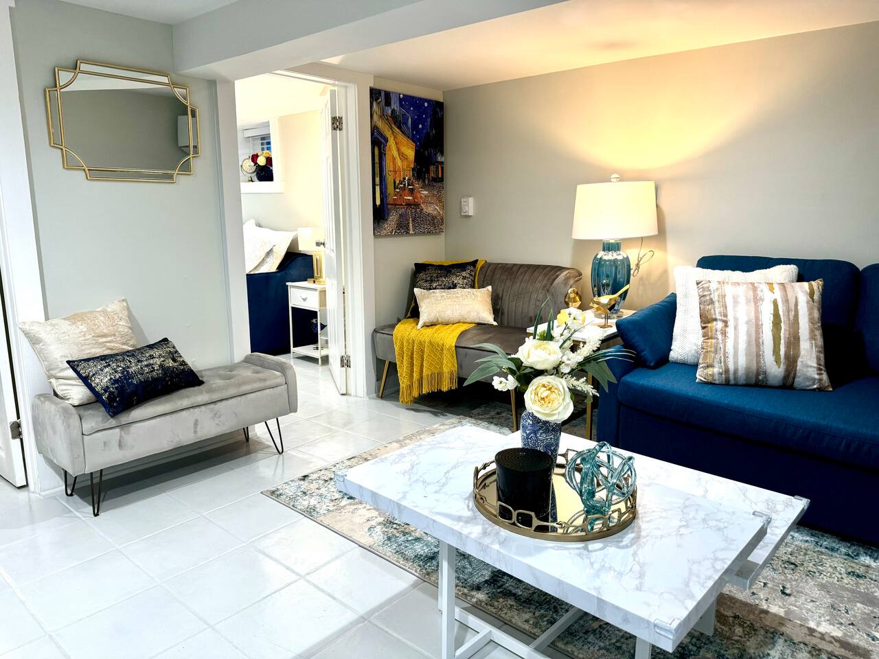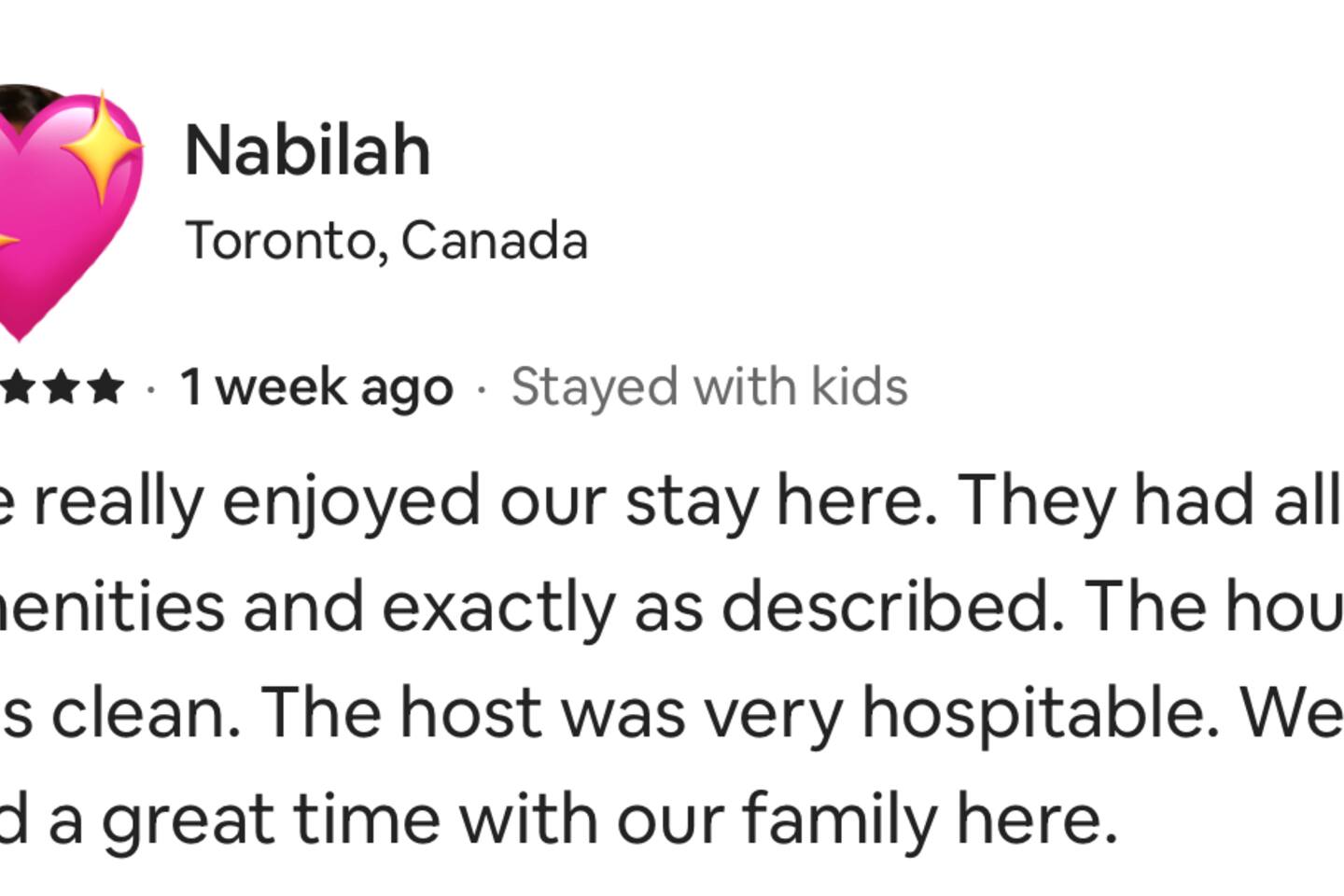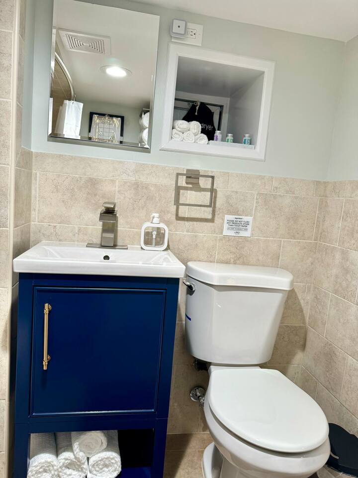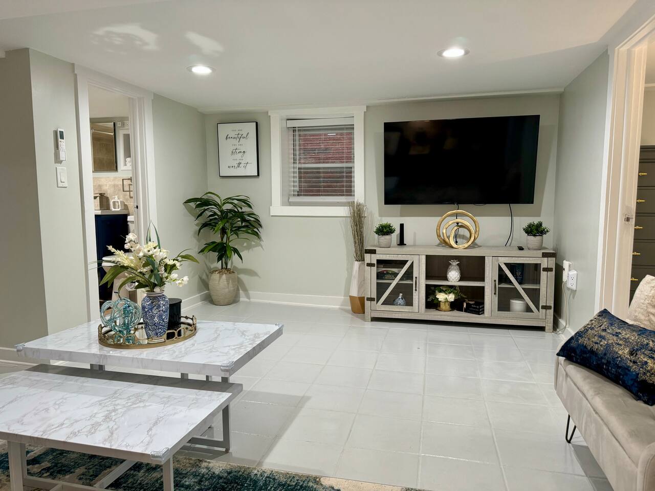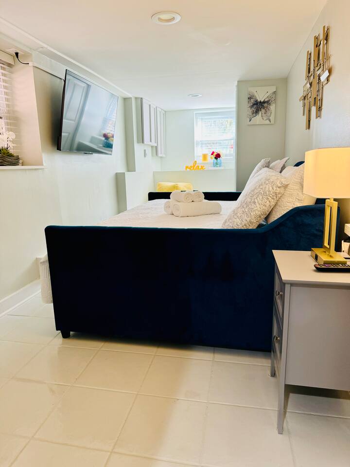 The large backyard has a sitting area with outdoor furniture, a fire pit, and fire grill. Free parking. This apartment has a low ceiling and it’s not ideal for people over 6 ft. tall. A family with 2 children lives on the second floor, while we ask the kids to not run or make loud noises, you may hear footsteps/noise during non-school/non-summer camp hours. Our property features a large living room with a 55 inch 4K FireTV. A sofa bed which fits two people, and a full size blow-up mattress in case you need the extra sleeping space. The bedroom to the right features a queen size bed w/closet, a 50 inch 4K Roku Smart TV, and a full length mirror. The bedroom to the left features a full size bed w/closet, 50 inch 4K Roku Smart TV, full body mirror, extra dresser for storage, and a sitting area for relaxation. The kitchen is fully stacked with a large refrigerator (w/filtered water built-in ice maker, and BPA Free Brita Pitcher for filtered water), decaffeinated/caffeinated coffee/tea w/cream & Sugar. —Laundry— We are only eight walking blocks away from the laundry mat. —NJ transit bus is only two blocks away from this house. The bus will take you directly to Port Authority, a short walking distance to Times Square in NYC. There are also privately owned smaller buses. The fee for the bus is between $4.00-$7.00, one way/person. The travel time depends on traffic. With no traffic, public transportation will take you there in 35 minutes. If you drive you can be there in 20 minutes. —There’s also the Tonnelle Avenue Station, this light rail is only 7 minutes away from the house and takes you to the path-train, with the World Trade Center, downtown NY as its final destination. The light rail also takes you directly to Liberty State Park where you can enjoy seeing Ellis Island and the Statue of Liberty. ⚠️ Ceiling Height Notice This is a charming older unit with some low-clearance areas: Living room ceiling: 75" Kitchen ceiling: 72" Living room support beam: 58" Bathtub height: 70.5" Left bedroom closet: 63" Please be mindful of these when moving around the space.
