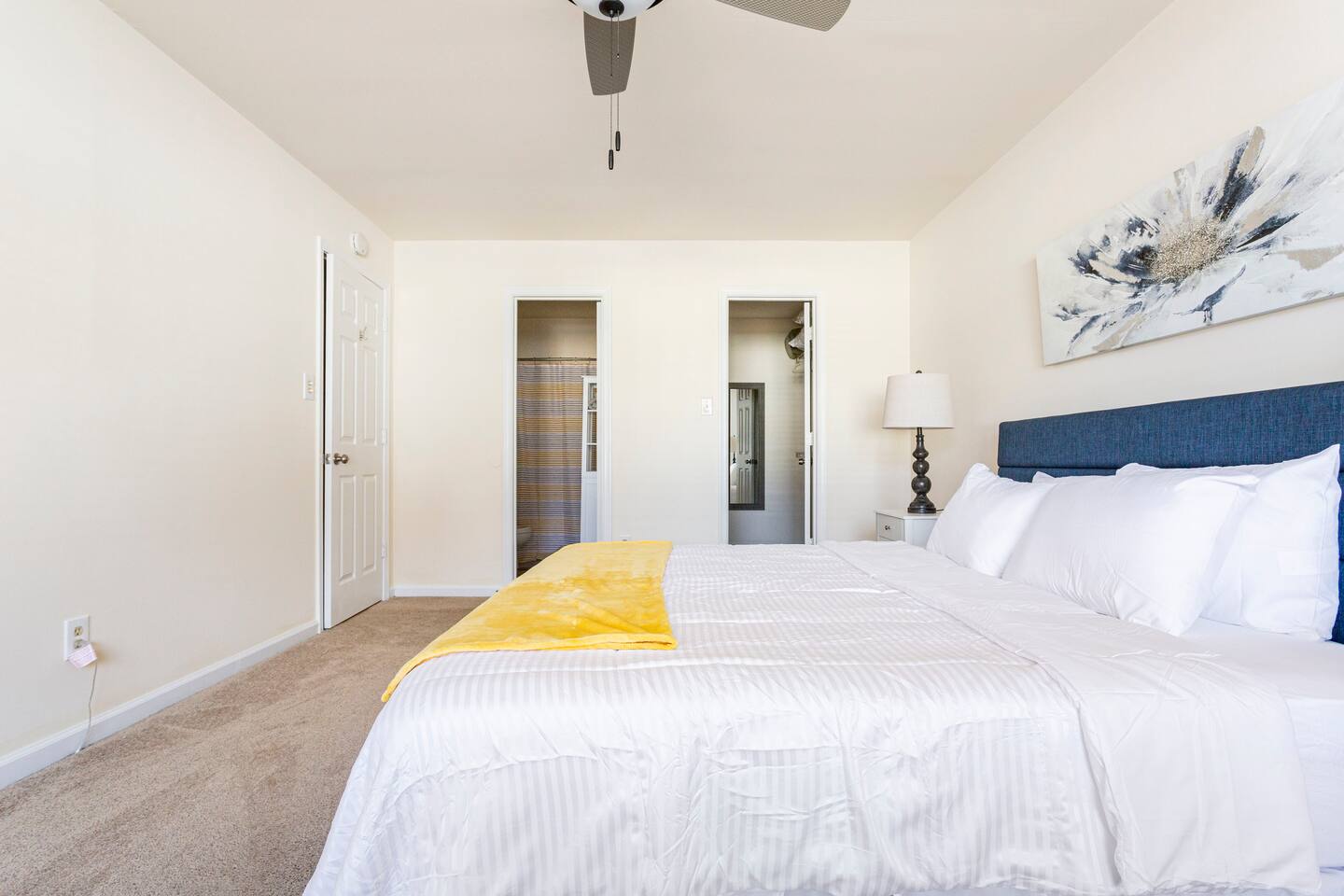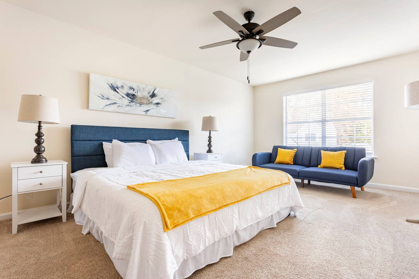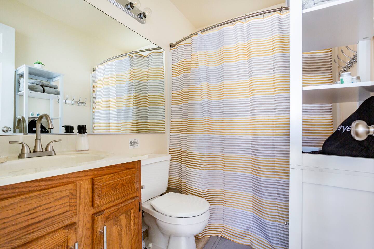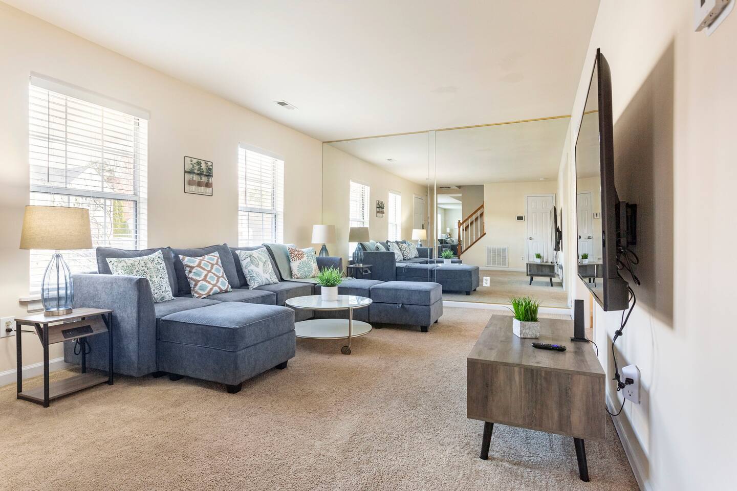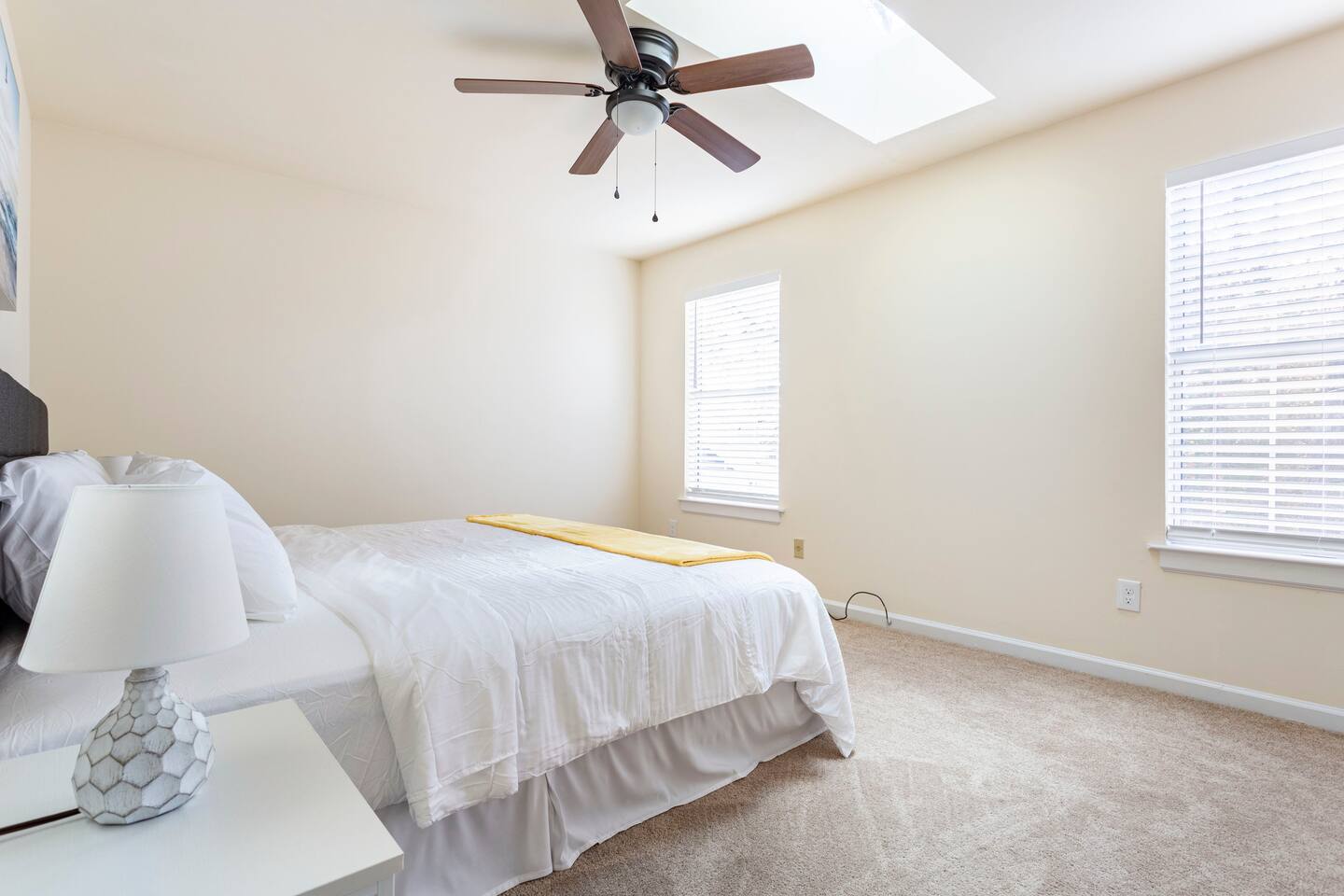 Our property features a large living room with a 65 inch 4K HDTV. The family room is a good size with comfy couches and a computer desk. Our guests compliment the confortable bedding we offer. The master bedroom has it's own full bathroom, walk-in closet, King size bed and 55 inch 4K Smart HDTV. The sun bedroom features a Skylight, King size bed, large mirror, and 55 inch 4K Smart HDTV. The third bedroom has a Queen size bed. The fourth bedroom has a Queen size bed and 43 inch 4K Smart HDTV. The large backyard has tall shade providing trees and a good size deck with a long seating bench.